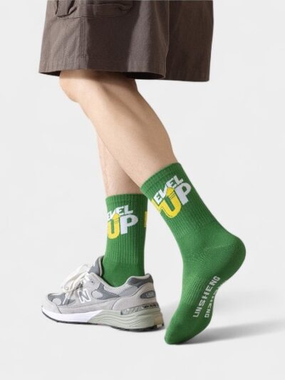 These mid-length socks feature a striped text print, adding a touch of personality to your everyday style. It features Text print and Striped pattern for practical everyday use.